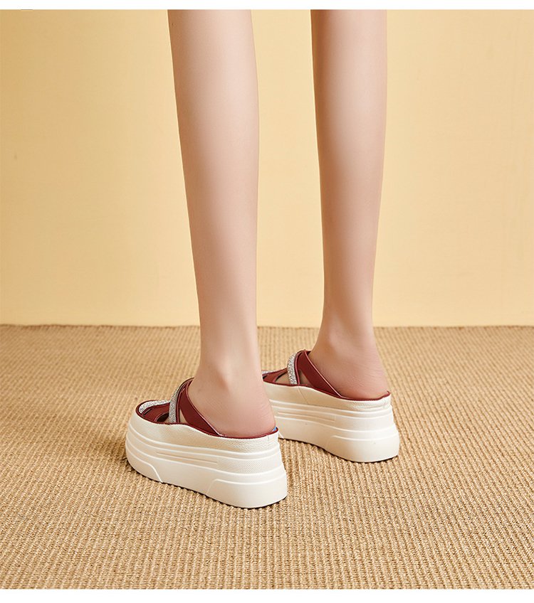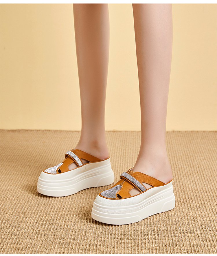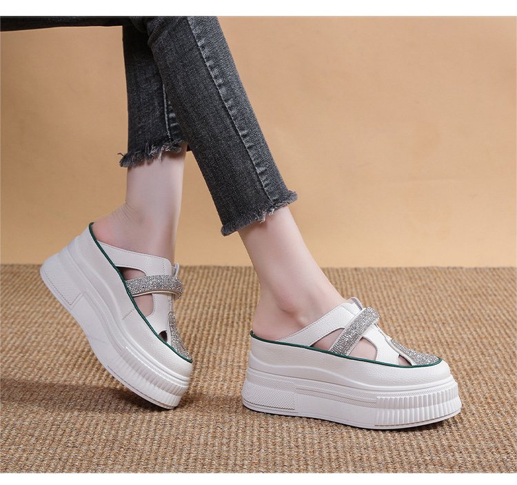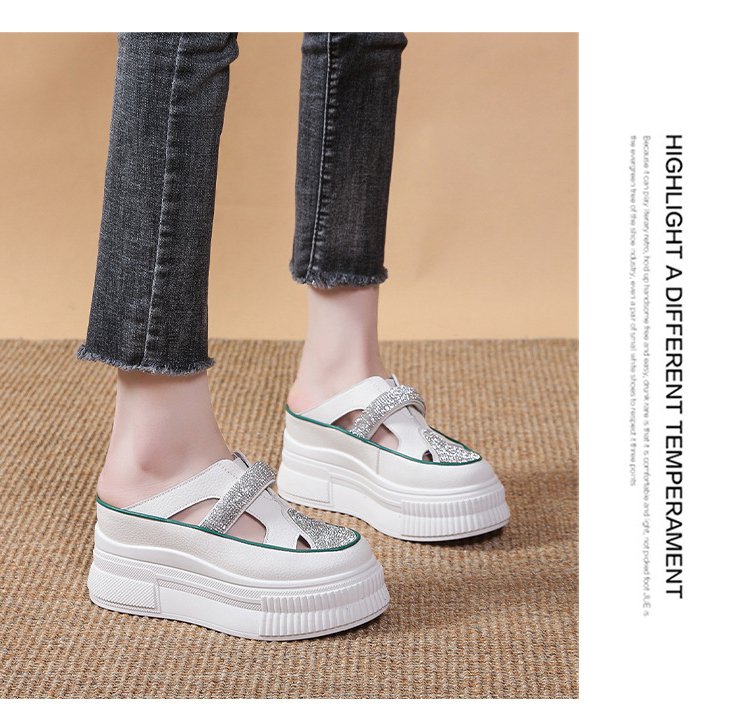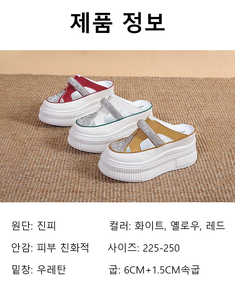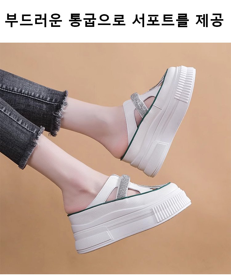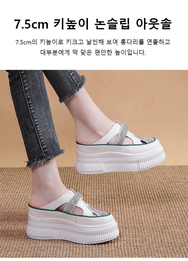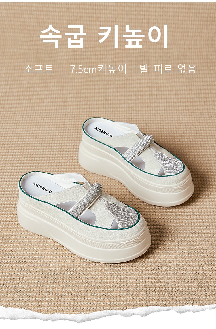 컷아웃 라인스톤 바오터우 하프 슬리퍼